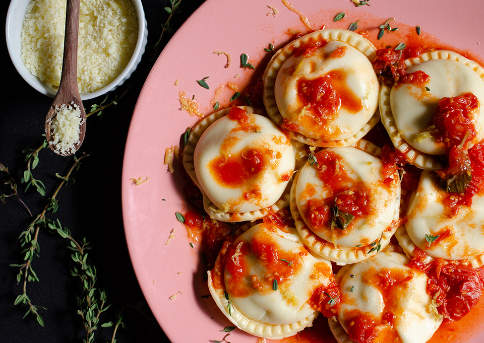 Massa fresca recheada com um leve e aromático creme de limão siciliano, servida com um delicado molho de tomate cereja salteado no azeite e ervas frescas.