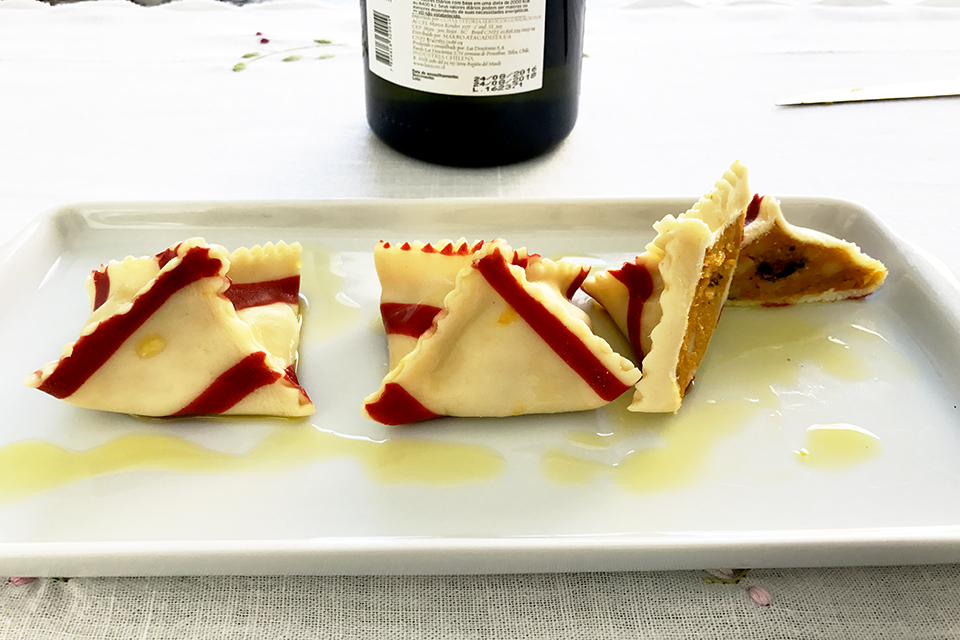 Agnolotti Verde com Ricota, Uva Passas e Nozes